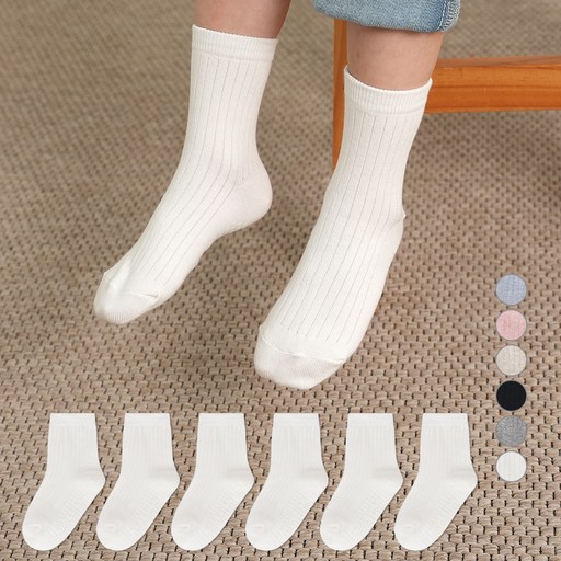 노디자인 아동용 전사이즈 미끄럼방지 패드 심플 골지 중목 양말 6켤레